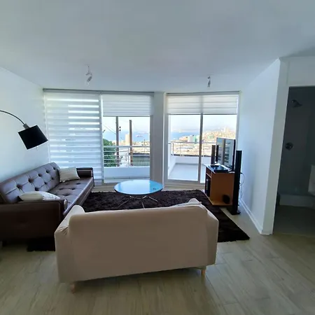 Depto Con Terraza Vista Al Mar Valparaíso, un appartamento con 1 camera da letto, si trova inoltre a soli 8 minuti a piedi dalla Plaza Victoria. L'appartamento dispone di una terrazza con una vista sulla piscina.